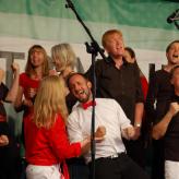 Die Fête de la musique ist für uns immer etwas ganz Besonderes. Denn auch wenn die Akustik an der Freilichtbühne am Bahnhof nicht die allerbeste ist, haben wir bei diesem Auftritt besonders viel Spaß – so auch dieses Jahr. Zum einen, weil wir schon beim Einsingen im Bahnhof unter der Treppe beim Eiscafé eine kleine Vor-Party mit einigen spontanen Zuschauern starteten. Und zum anderen, weil das Publikum der Fête mit jedem Chor auf der Bühne mitfeierte und mitsang. Da konnten wir mit unseren drei Partykrachern „Hero“, „Don't stop me know“ und „Uptown Funk“ natürlich punkten. Bei allen drei Liedern kamen wir gut ins Schwitzen – was nicht nur an den sommerlichen Temperaturen, sondern auch an unserer Choreografie lag. Ein wenig verschnaufen konnten wir bei „I am what I am“.